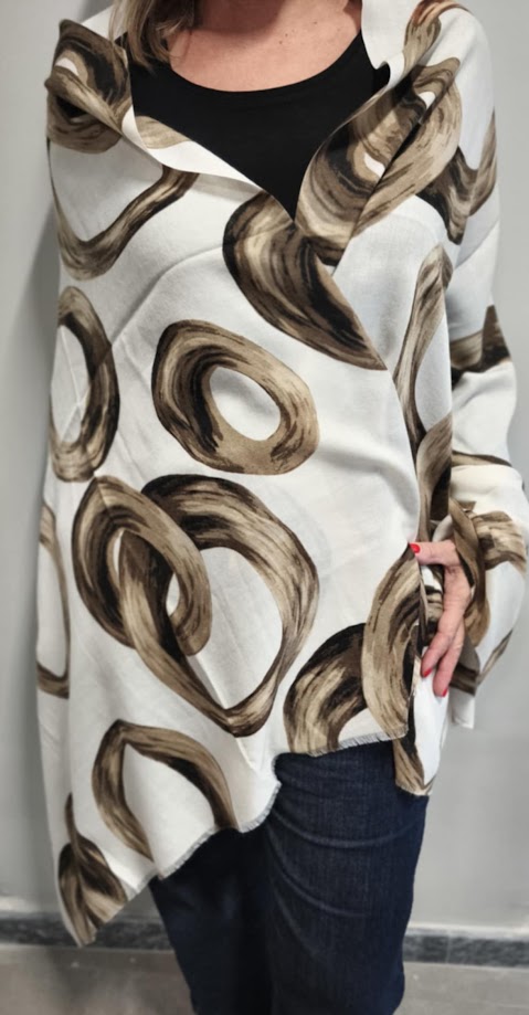 Εσάρπα Μαλλί Βισκόζη Γαλλική Κρίκοι λευκό καφέ