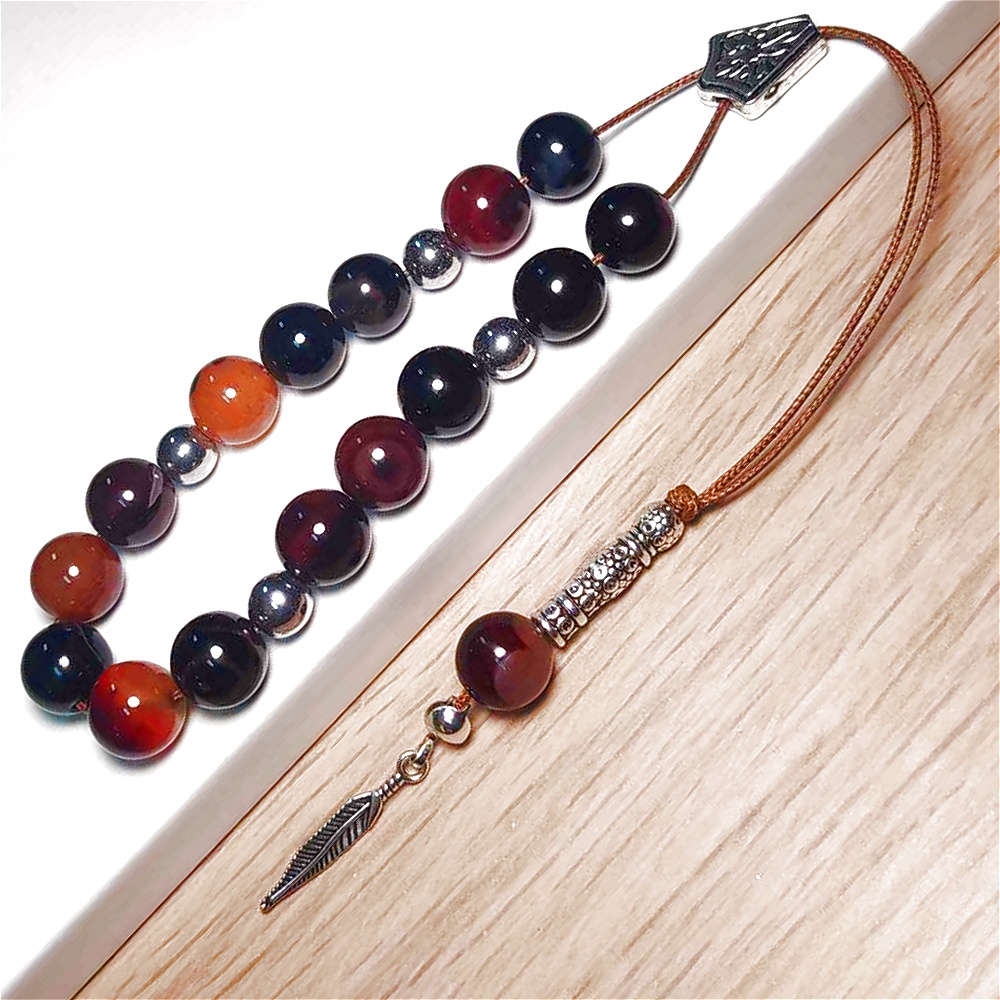 Κομπολόι ημιπολύτιμων λίθων Αχάτη και Αιματίτη με 19 χάντρες