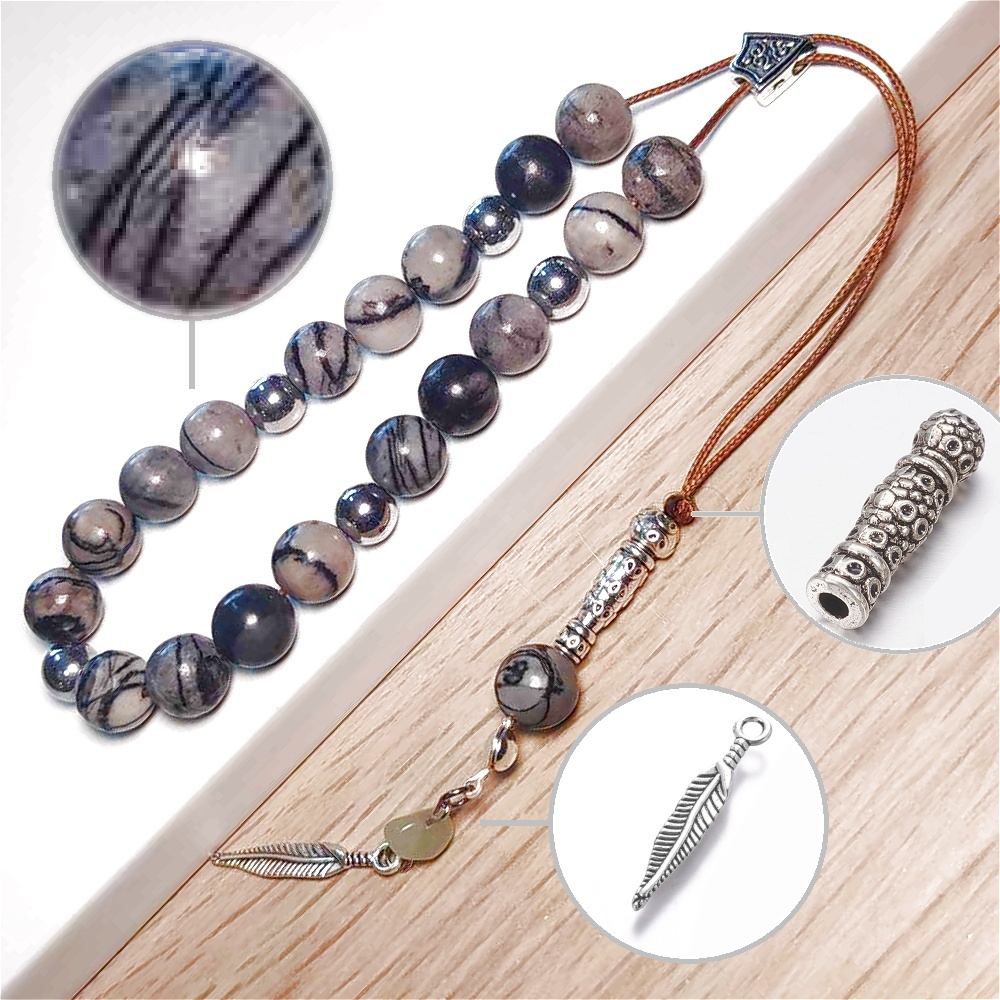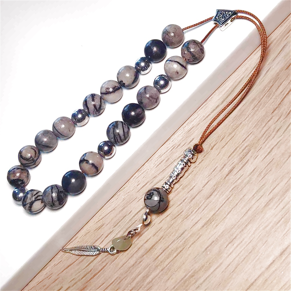 Κομπολόι ημιπολύτιμων λίθων Μεταξωτού Netstone και Αιματίτη με 23 χάντρες