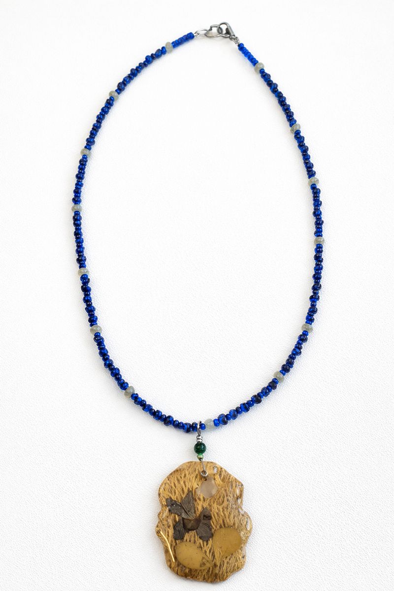 Ένα μοναδικό, χειροποίητο κολιέ που συνδυάζει την φυσική ομορφιά των αγριολούλουδων με την δομή των νευρώνων από φραγκοσυκιά, δημιουργώντας ένα ιδιαίτερο και καλλιτεχνικό αποτέλεσμα. Οι γυάλινες χάντρες προσθέτουν λάμψη και χρωματική ζωντάνια, ενώ το ατσάλινο κούμπωμα εξασφαλίζει σταθερότητα, αντοχή και υποαλλεργική χρήση.