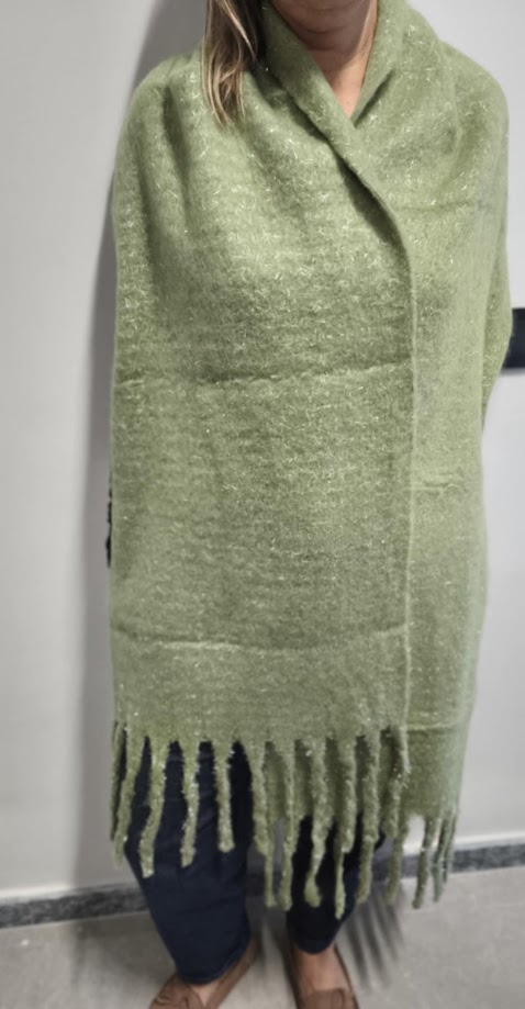 Κασκόλ Κασμίρι Βισκόζη Γαλλικό Lurex Κλωστή Μακρύ Κρόσι Πράσινο