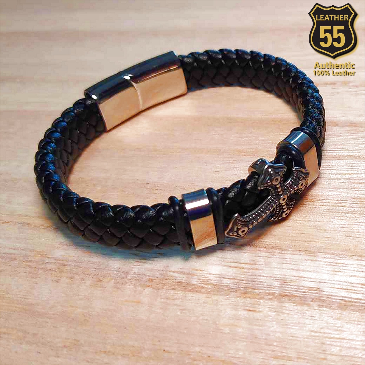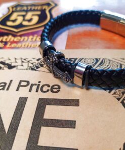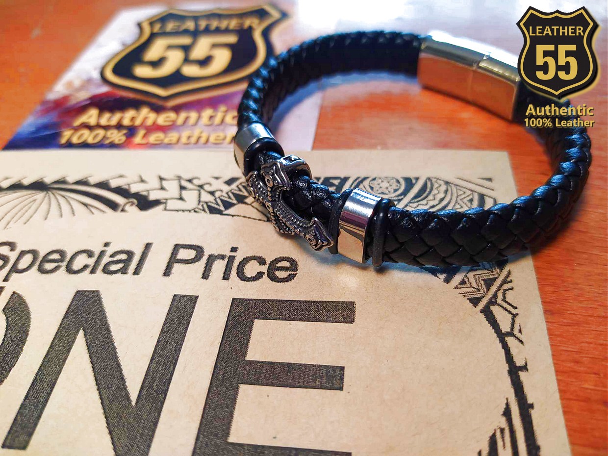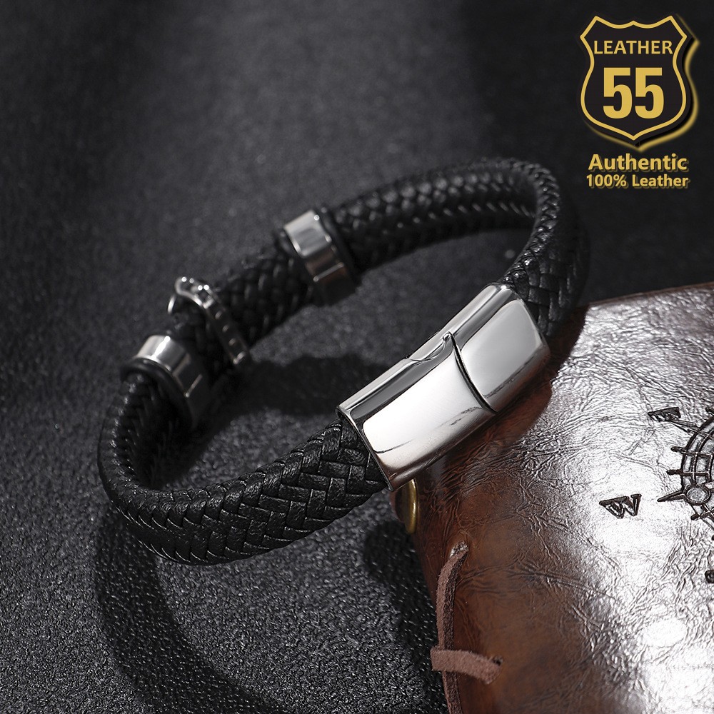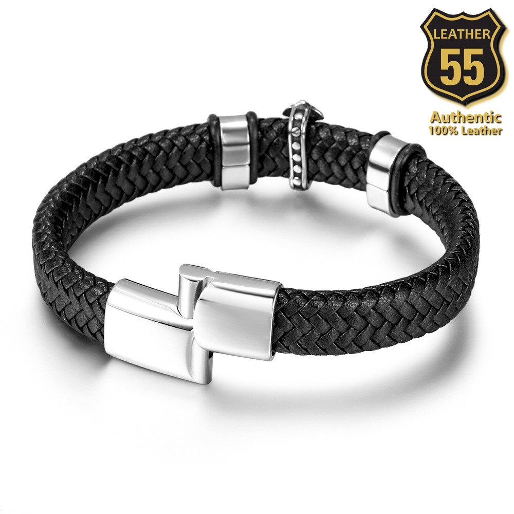 Leather 55 Ανδρικό Xειροποίητο Δερμάτινο βραχιόλι με ανοξείδωτο ατσάλι