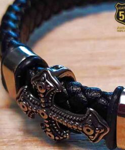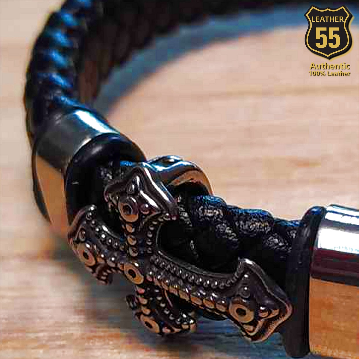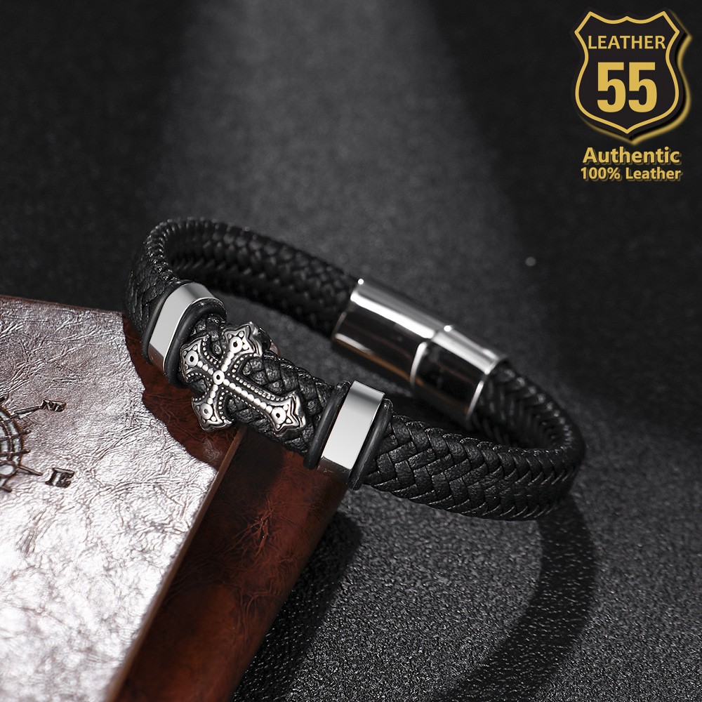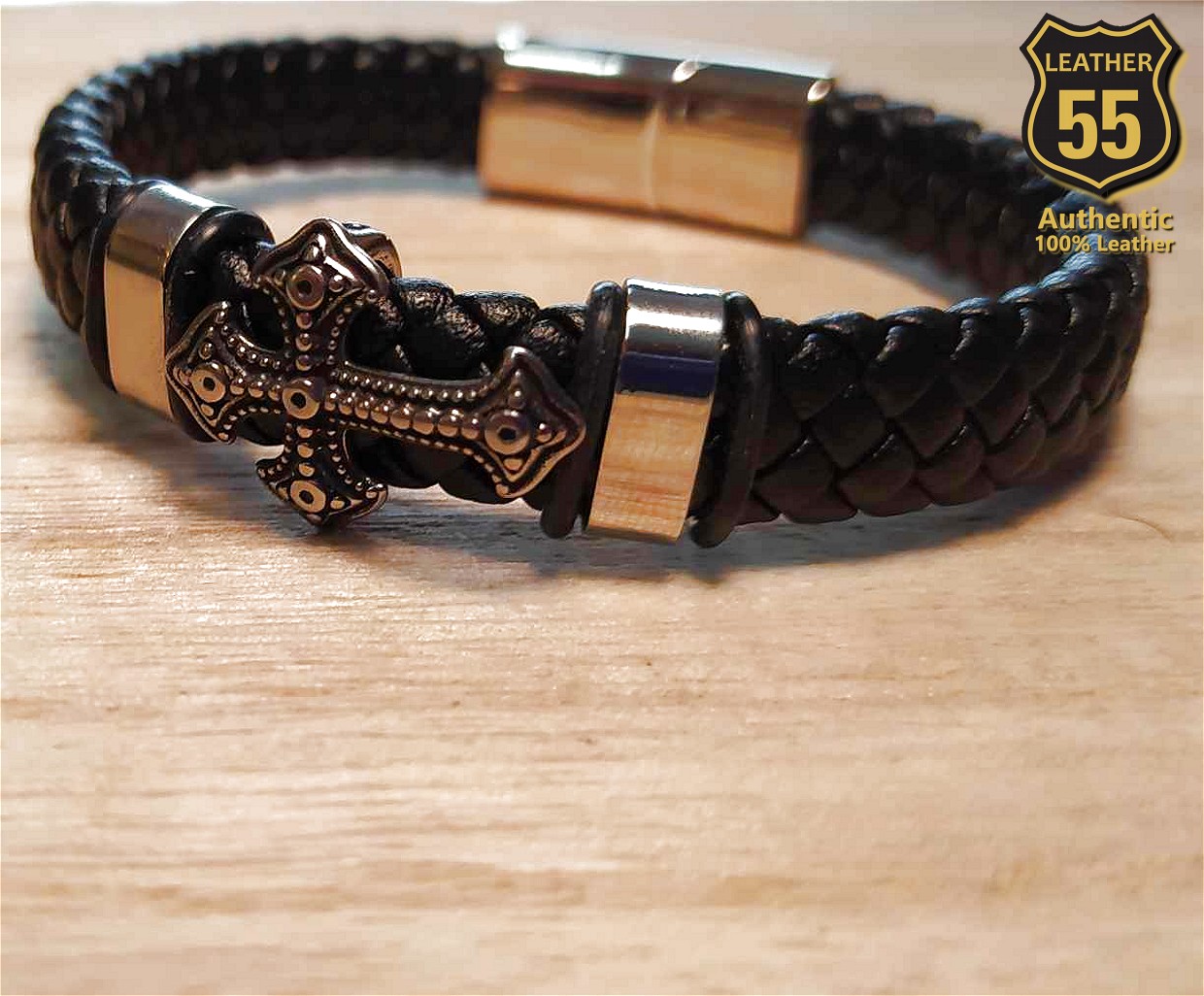 Leather 55 Ανδρικό Xειροποίητο Δερμάτινο βραχιόλι με ανοξείδωτο ατσάλι